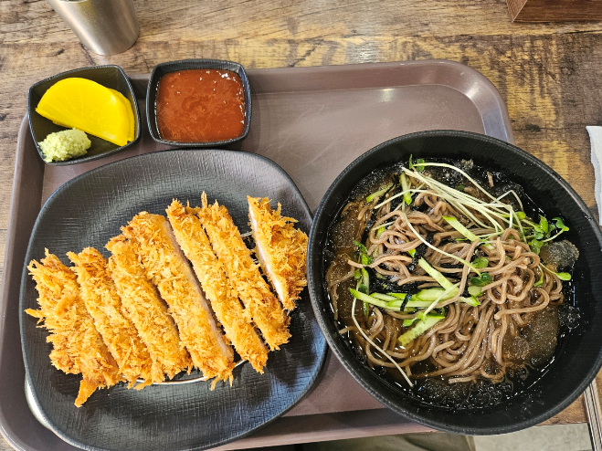 돈까스의 느끼함을 냉모밀 국물이 잘 잡아줬어요