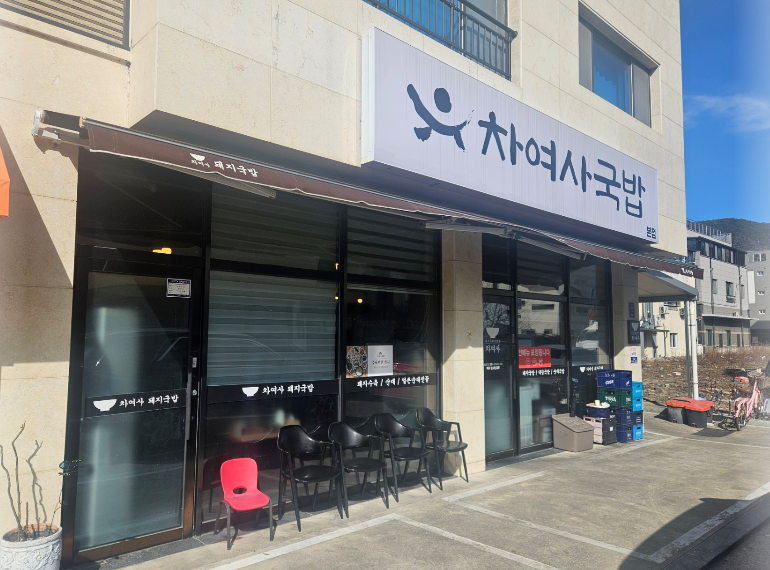 차여사 국밥은 대구 연경동의 중심가에 위치해 있어요. 주변에는 다양한 상점들이 있어 식사 후에 산책하기에도 좋은 장소랍니다. 특히 CGV 연경점 바로 인근이고 주차를 CGV 야외 주차장에 함께 이용할 수 있다는 점이 장점이에요 그래서 저희 가족은 영화 보면 꼭 들리는 식당이랍니다.