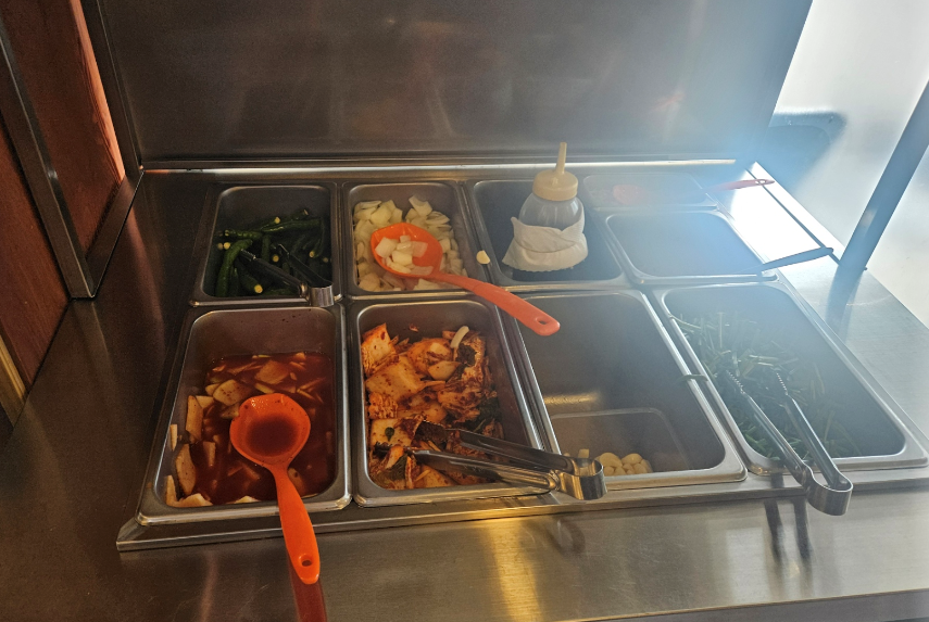 밑반찬은 세프바에서 전부 추가로 먹을 수 있어요