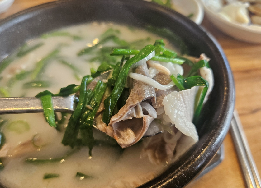 대구의 다른 국밥집에 가면 살코기국밥을 주로 주문하는데 대구에서 유일하게 내장과 함께 나오는 국밥을 즐기는 곳입니다. 돼지 잡내가 안나서 내장의 고소함을 느끼기에 좋아요