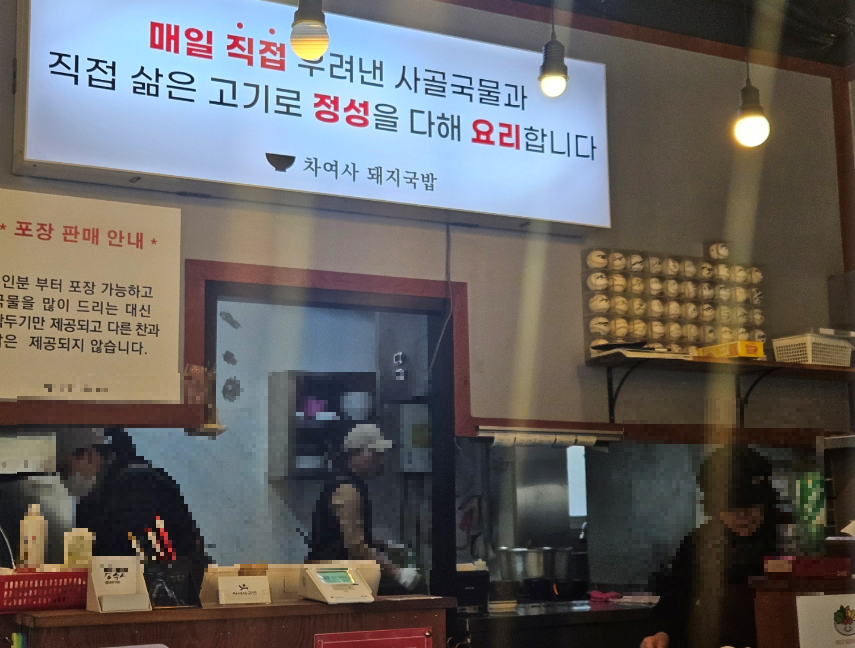 식당 내부는 깔끔하고 정돈된 분위기로 편안하게 식사를 즐기기에 적합합니다. 생긴지 오래되지 않아서 식당 내부가 무척 깔끔합니다. 보통 돼지국밥 맛집 가면 돼지냄새와 조금 지저분한 식당 내부 모습으로 인상이 찌푸려질 때가 많은데 여긴 일단 깨끗해서 좋아요