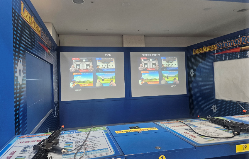 대형 스크린에서 실제 총을 들고 사격하는 체험을 할 수 있어요