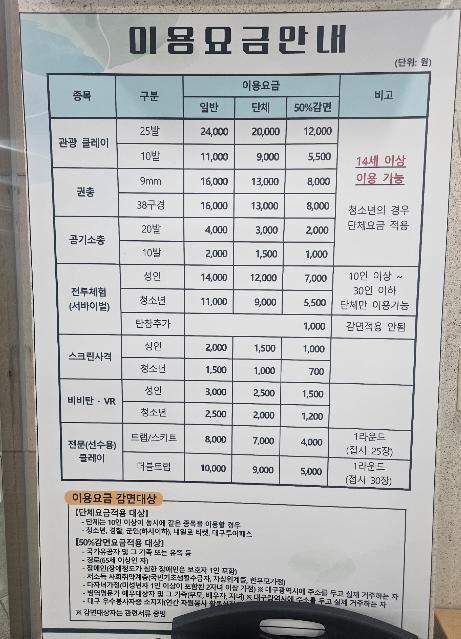 신분증 없이도 가능하고 스크린 사격, VR사격, BB탄 사격을 즐길 수 있답니다.