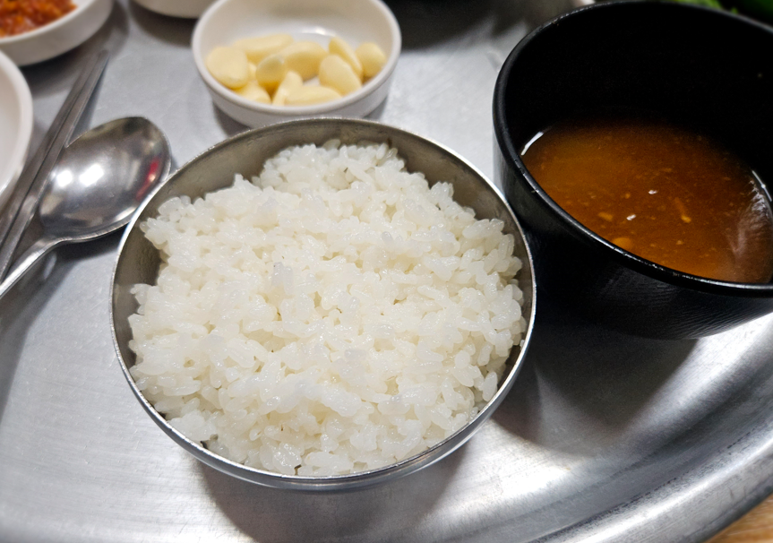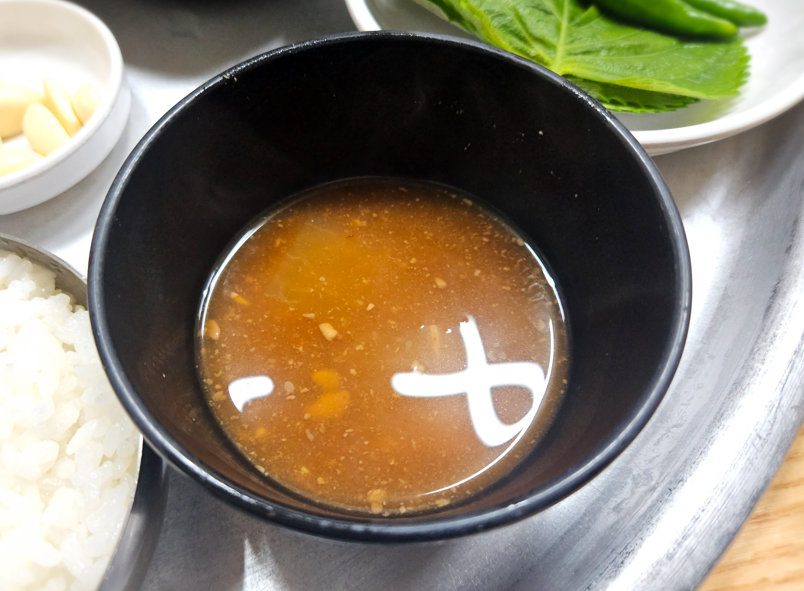 기본상차림은 김치, 마늘, 된장 그리고 상추가 나오는데 셀프바가 있기에 밑반찬을 충분히 가져다가 먹을 수 있어요. 야채 리필이 무한정이라는 점이 참 좋았습니다.