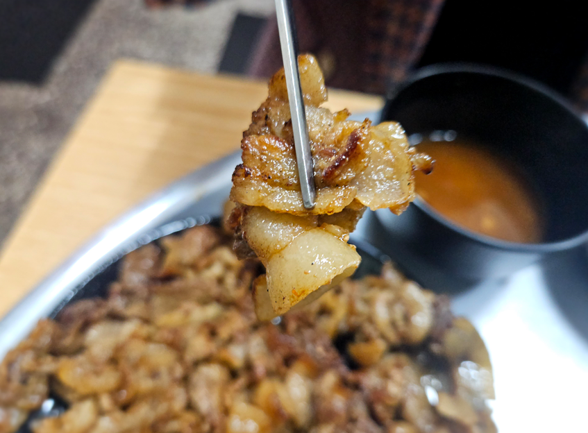 고추장불고기는 달짝지근하면서도 매콤해 돼지고기의 육즙과 조화를 이룹니다. 그런데 확실히 매워요. 저도 매운 것을 못 먹지는 않지만 야채 없이 고추장불고기를 먹으면 상당히 입이 얼얼합니다. 메뉴주문할 때 맵기 정도를 물어보시는 이유가 있었습니다. 맵지리라면 처음 주문부터 덜 맵게를 꼭 외치세요