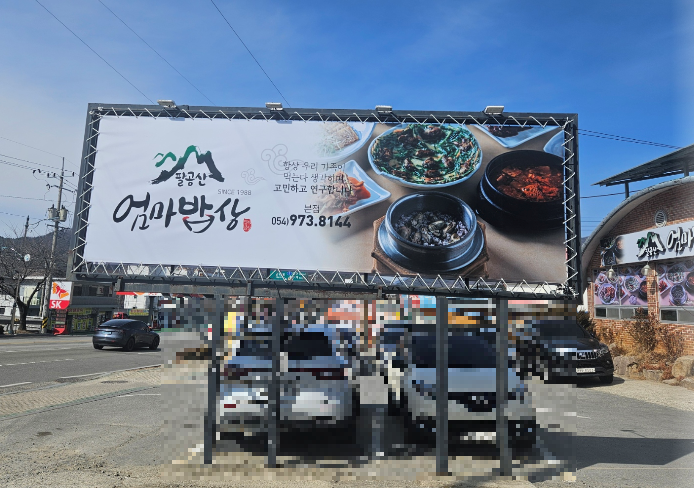 엄마밥상은 경상북도 칠곡군 동명면 팔공산로 157에 위치해 있어요. 팔공산 드라이브 코스 중 파계사에서 동명 네거리로 향하는 도로 오른편에 자리하고 있어 찾기 쉬워요 대중교통 접근은 불편하니 자차 이용을 추천드려요. 식당 앞과 옆에 넓은 전용 주차장이 마련되어 있어 주차 걱정 없이 방문할 수 있어요