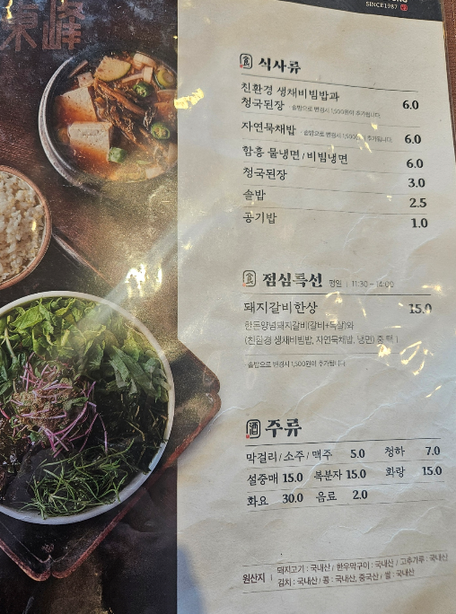저희는 친환경 생채비빔밥과 청국된장을 주문했습니다.