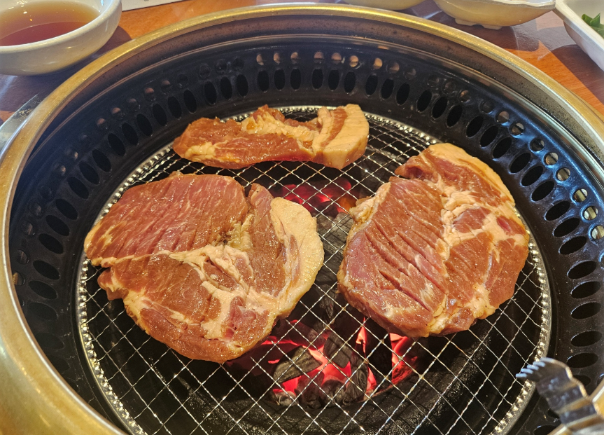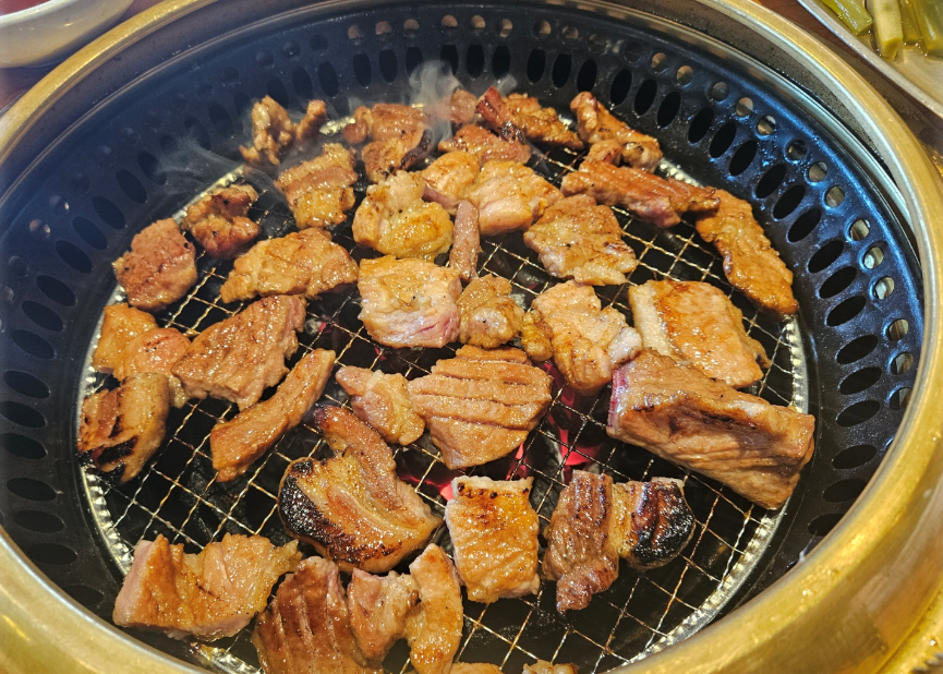 숯에다가 고기를 구워서 신선한 채소와 함께 싸먹으니 정말 맛있었습니다. 고기가 부드럽고 양념이 잘 배어 있어서 한 입 먹는 순간 행복감이 밀려왔답니다.