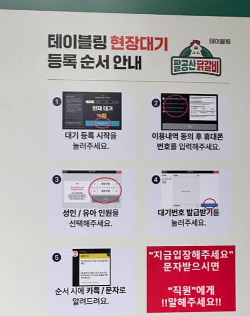 입구에 들어가면 테이블링 현장대기 등록 안내가 있어요