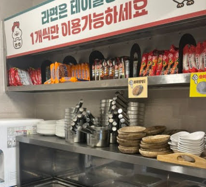 라면은 테이블당 1개씩만 이용가능해요