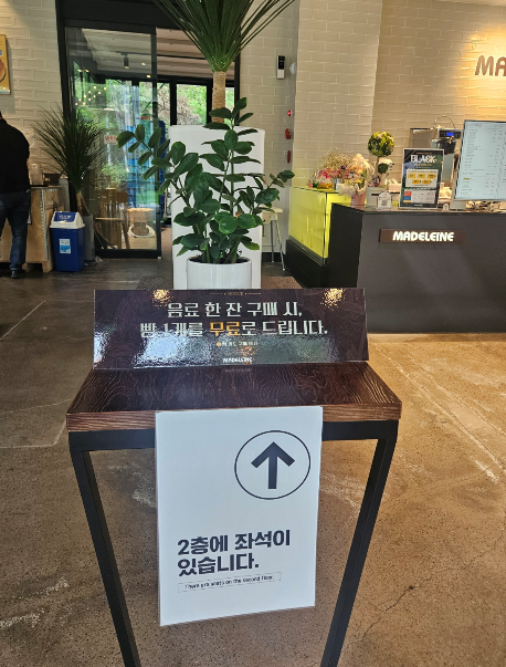 특히 눈에 띄는 점은 음료 한 잔 주문 시 빵 서비스를 제공한다는 것이에요