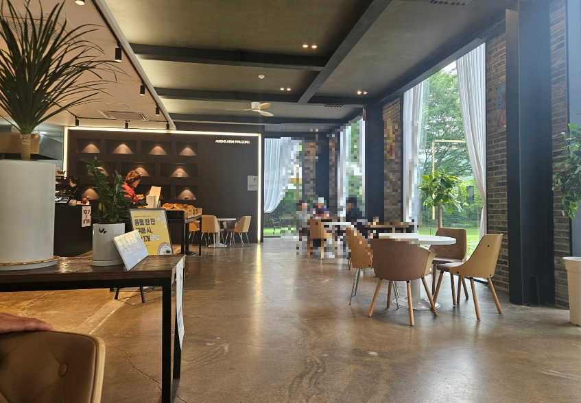 내부는 깔끔하고 아늑한 분위기로 꾸며져 있으며 넓은 창을 통해 자연 풍경을 바라볼 수 있어요