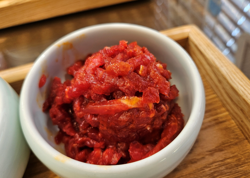 이렇게 하면 뜨거운 밥 때문에 육회가 익지 않아서 신선한 맛을 그대로 느낄 수 있었어요