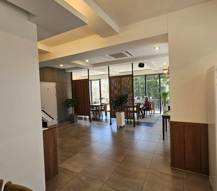 통유리 너머로 보이는 푸른 나무들이 싱그러운 숲속 뷰를 연출했고