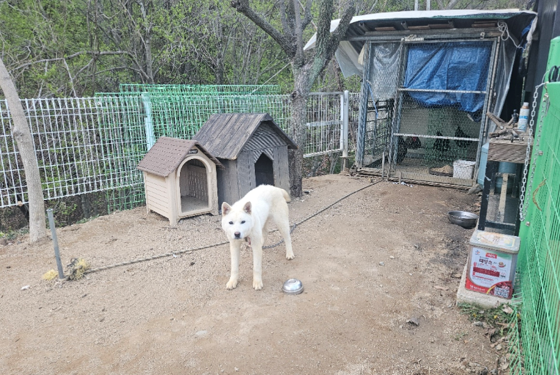 아이들은 주차장 한켠에 있는 강아지를 보며 한참을 놀았어요
