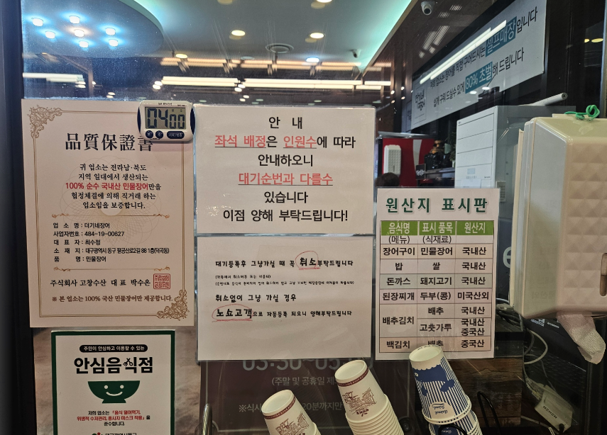 더기네 장어는 전라북도 고창에서 공급받는 100% 국내산 풍천민물장어인 자포니카종만 사용하고 품질 보증서도 게시되어 있어 신뢰할 수 있었어요. 가격이 높은 만큼 품질은 확실히 보장되는 것 같았어요