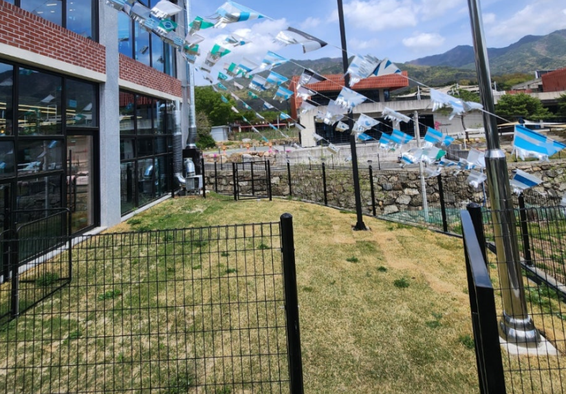 식사를 하면서 반려견이 잔디에서 뛰어 노는 모습을 볼 수 있으니 사장님의 센스 칭찬해요