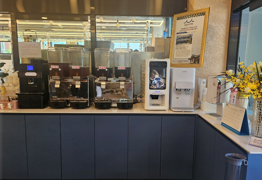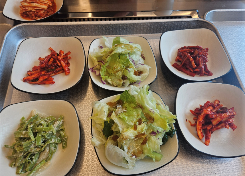 기본 상차림이 제공되고 반찬은 셀프바에서 자유롭게 가져다 먹을 수 있어요