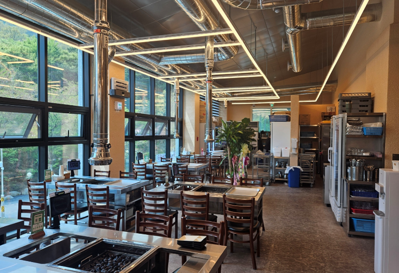 정말 넓은 공간이고 테이블이 질서 있게 배치되어 있어 단체 모임에 적합해 보였어요