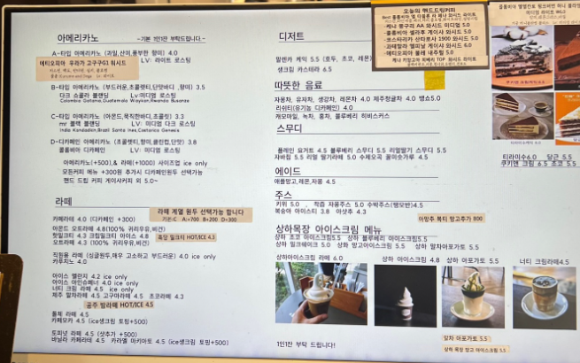 메뉴 및 커피리뷰
