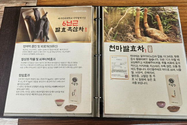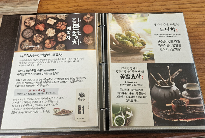 이번에 가족들과 함께 주문한 메뉴는 노니차, 해독차, 홍삼발효차입니다.