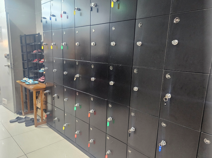 신발을 벗고 제공된 슬리퍼로 갈아 신고 들어가는 시스템입니다.