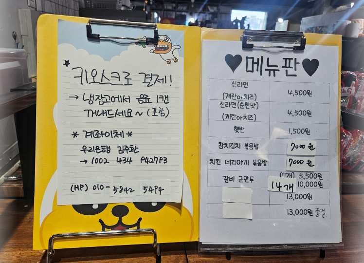 치즈라면, 볶음밥, 컵라면까지 다양한 종류의 음식이 있어요