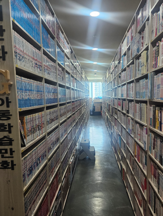 책이 정말 많아서 어떤 걸 볼지 고민될 정도예요. 도서 검색 시스템도 있어서 원하는 만화를 쉽게 찾을 수 있습니다.