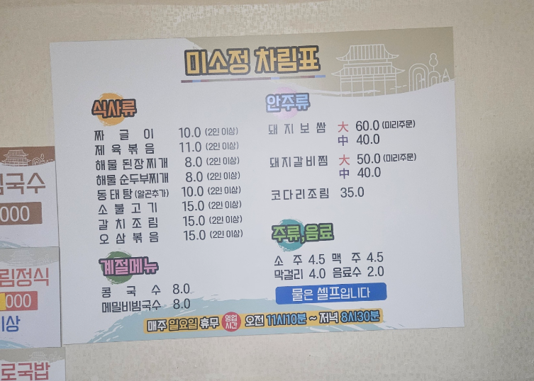 혼밥족들에게도 부담 없고, 단체 손님들에게도 만족스러운 미소정 식당,