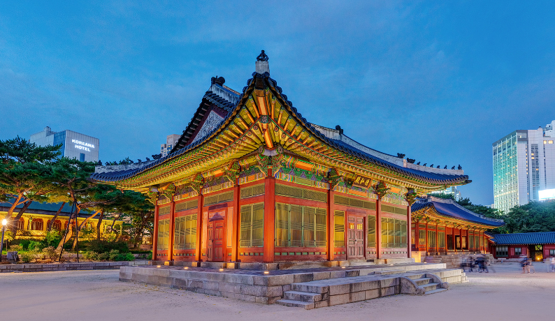 덕수궁의 주 전각인 중화전은 왕이 국정을 수행했던 장소로, 그 내부에는 왕의 의자와 함께 해를 상징하는 벽화가 그려진 병풍이 있습니다. 이 벽화는 국가의 영속적인 번영을 기원하는 의미를 담고 있습니다.