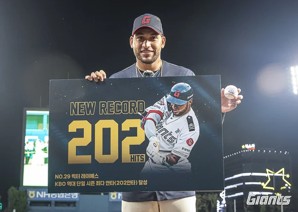 올해 롯데가 최다 안타 기록을 세운 빅터 레이예스와 재계약을 이루어 냈습니다. 보장금액 100만 달러, 인센티브 25만 달러 등 총액 125만 달러에 재계약을 했습니다. 2024년 총액 95만 달러보다 30만 달러 상승한 금액으로 계약을 해 롯데는 외국인 타자 걱정을 한시름 놓았습니다.