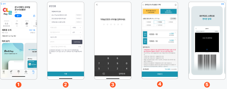 1. 앱스토어 및 구글플레이스토어에서 온누리 페이 앱(APP) 다운로드합니다.