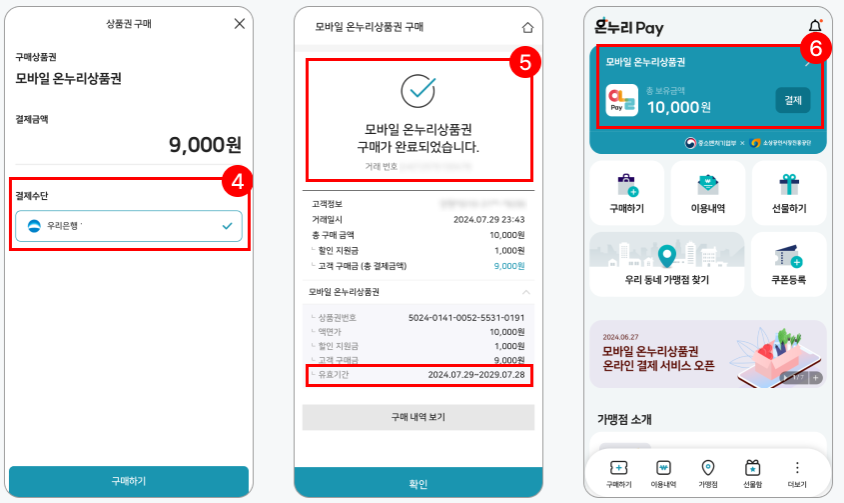 4. 앱에서 온누리 모바일상품권을 구입합니다.