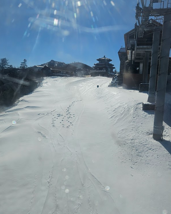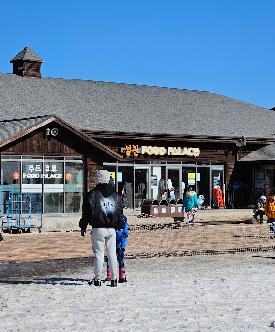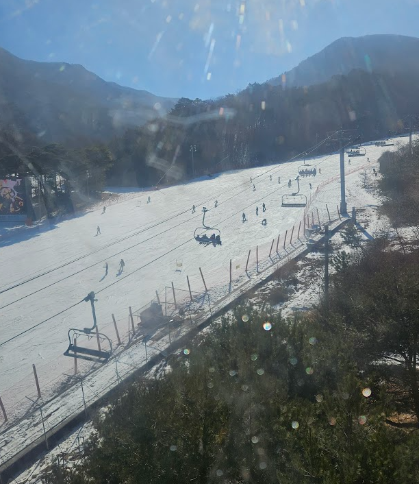 하행시간에 맞춰 곤도라를 타고 스키장으로 내려왔답니다.