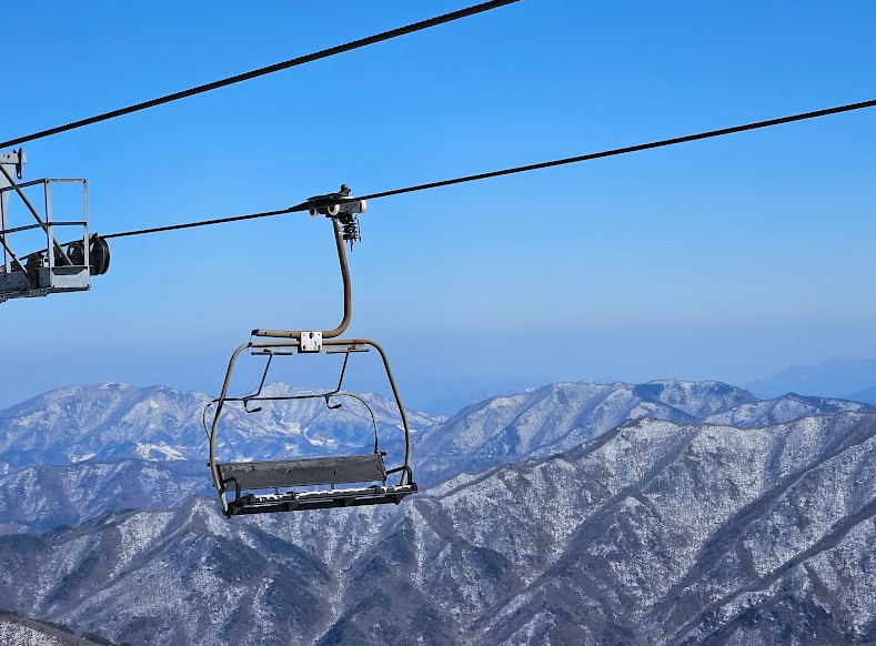 탑승장소는 설천 지구 스키장입니다. 매표 후 스키장 안으로 들어오면 곤도라 타는 곳이 보여요.