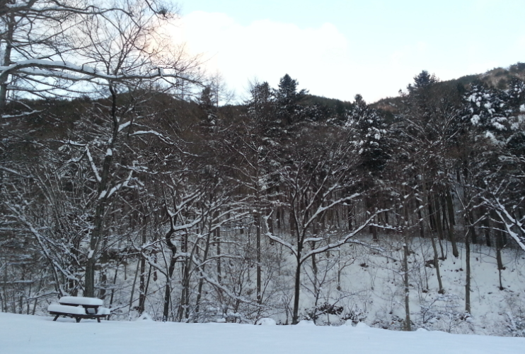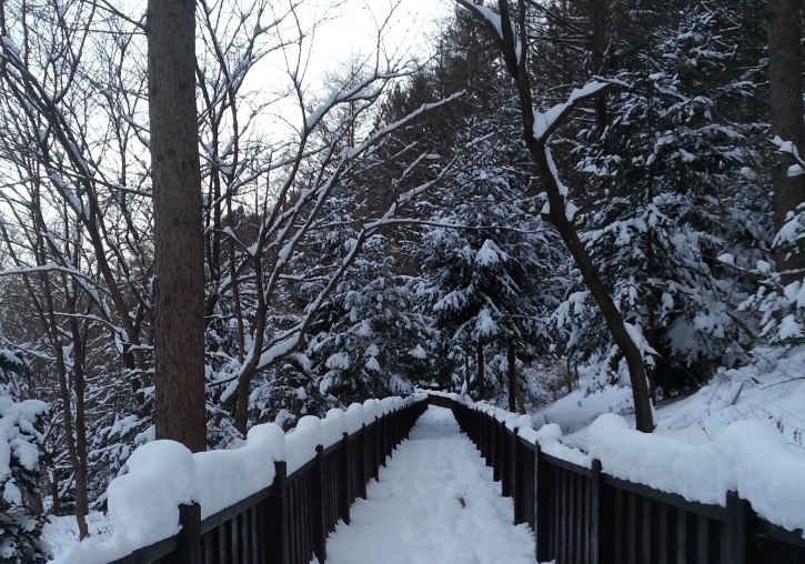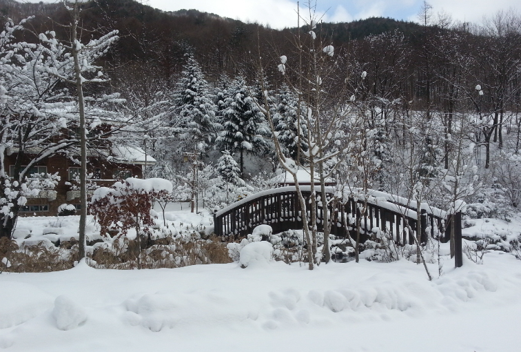 다음날 아침 일찍 그냥 가기 아쉬워 눈 내린 산책로를 따라서 걸어 보았습니다.