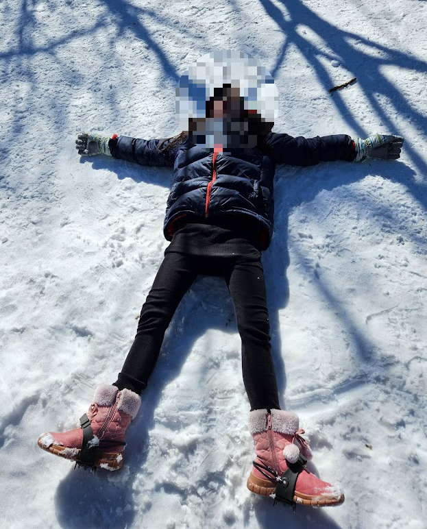 저도 덩달아 신나서 눈밭에 누워 하늘을 올려다봤어요.