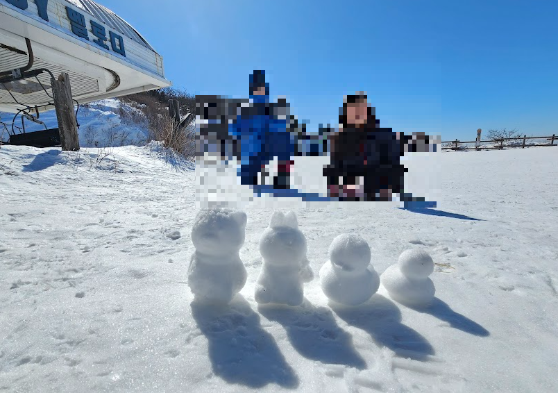 올라가는 길에 아이들과 눈사람도 만들고 눈 위에 뒹굴어도 보았어요