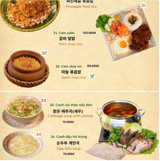 베트남의 독특한 볶음밥으로 달콤한 파인애플과 고슬고슬한 볶음밥의 조화를 이루는 요리입니다.