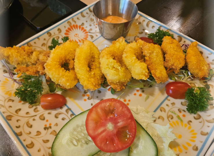튀김옷이 적당한 두께로 입혀져 있어 바삭함을 잘 살려주면서도 오징어 본연의 쫄깃한 식감이 그대로 느껴졌어요