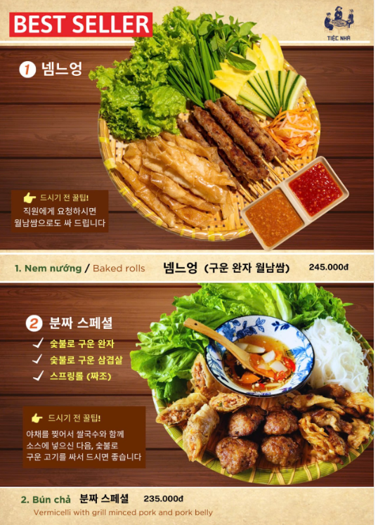 분짜, 짜조, 모닝글로리,바비큐 폭립 주문하는 것 추천해요