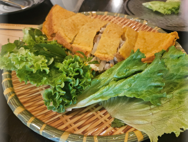 직원분이 반세오를 적당한 크기로 잘라 상추나 각종 채소와 함께 라이스페이퍼에 싸서 먹으니 그 맛이 더욱 좋았어요