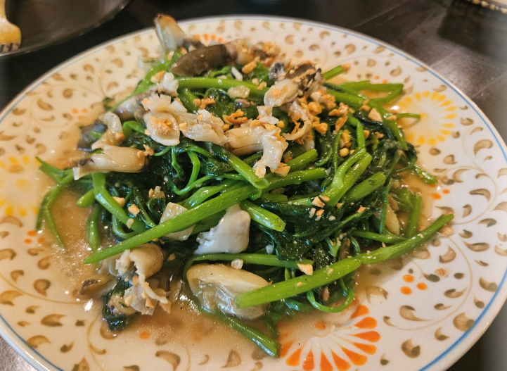 모닝글로리는 아삭아삭한 식감이 살아있어서 다른 고기 요리들과 함께 먹기 좋아요.