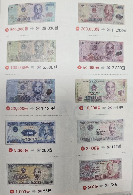 베트남에서 가장 이득이 되는 환전방법은 한국에서 미화 달러로 환전한 후 베트남 현지에서 동으로 환전하는 것입니다.
