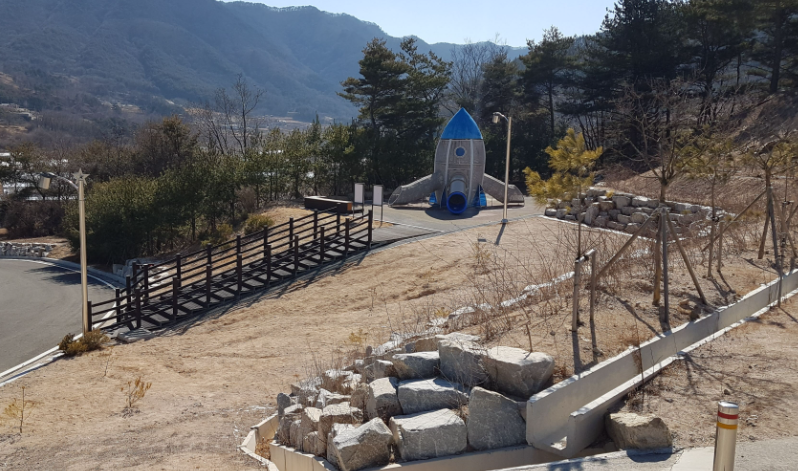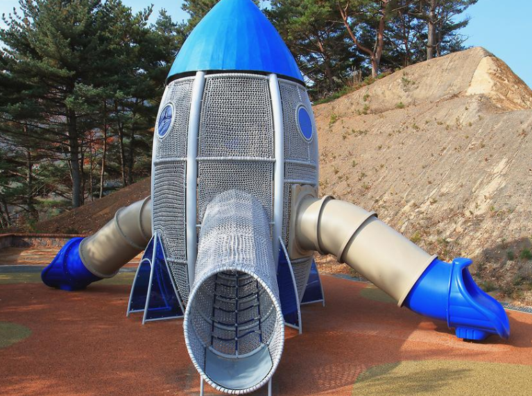 아이들을 위한 자그마한 우주선 모양의 놀이터도 있습니다.