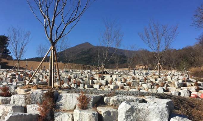 자동차 캠핑장은 30개로 전부 파쇄석이 깔려 있어요.