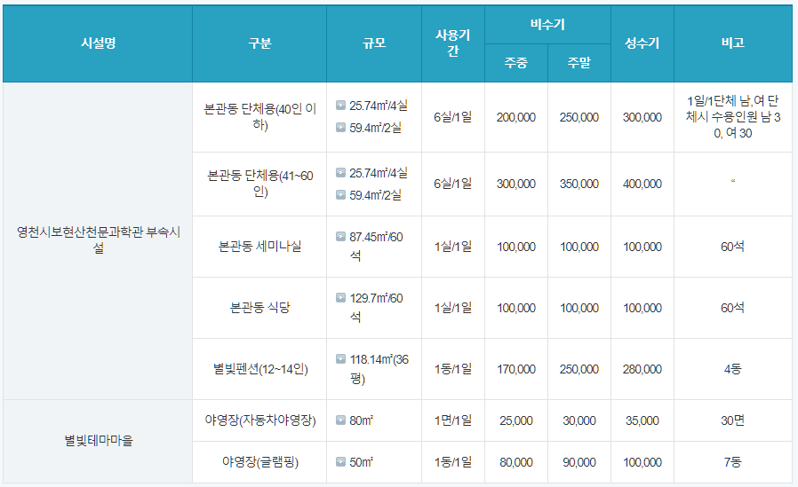 영천시에서 운영하는 거니 금액도 저렴했어요 주말 1박 기준 30,000원이랍니다.