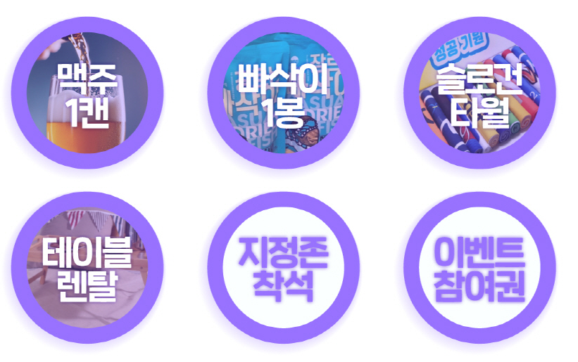 본 공연은 유료 무료 상관없이 관람은 가능하나 사전예약 유료관객에게만 10,000원에 제공되는 특별한 선물이 있습니다. 사전예약 유료관객은 지정존 착석, 이벤트 참여권이 주어지고 맥주 1캔과 빠삭이 1봉, 슬로건 타월, 테이블 렌털이 가능합니다. 미성년자는 5,000원으로 예약이 가능하고 맥주와 빠삭이 대신 기념품이 제공됩니다.