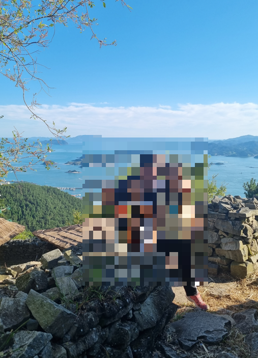 각산전망대 뒤로 보이는 큼직한 돌탑은 사천 각산봉수대로 조선시대에 사용했던 것입니다. 봉수군의 가옥과 함께 사진에 담기에 좋습니다.