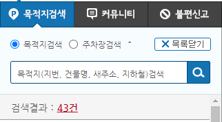 메인 페이지 상단 메뉴에서 목적지 지번이나 건물명으로 검색을 합니다.